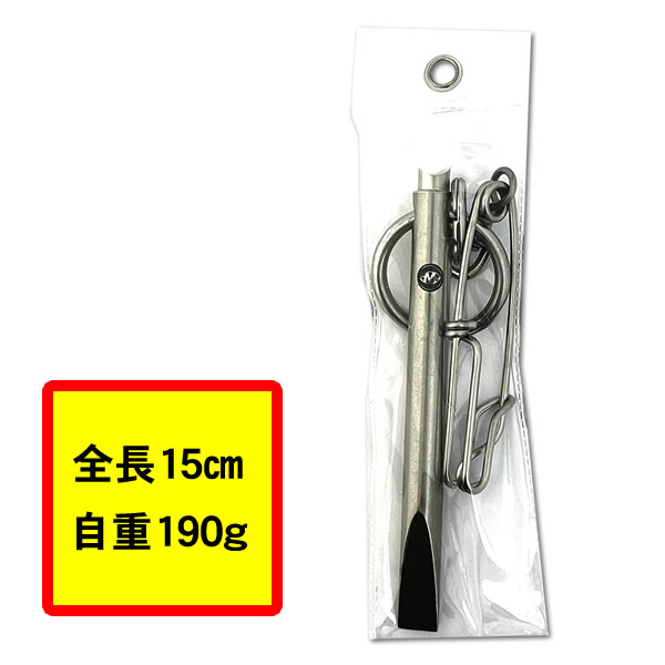 ハーケンはステンレス製で長く使っても錆びることがありません。全長15㎝、自重183g、救命具のポケットに収納できるコンパクトさメリットの一つです。